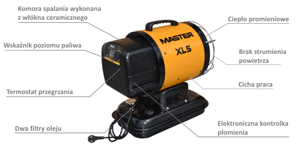 Nowy model Master XL-5 przeznaczony jest do ogrzewania mniejszych obiektów i powierzchni. Niewielkich rozmiarów, łatwy do przenoszenia, a jednocześnie równie wytrzymały i wydajny, jak model XL-9, z pewnością będzie chętnie wykorzystywany przy pracach renowacyjnych, w mniejszych pomieszczeniach magazynowych czy podczas kameralnych sesji zdjęciowych.